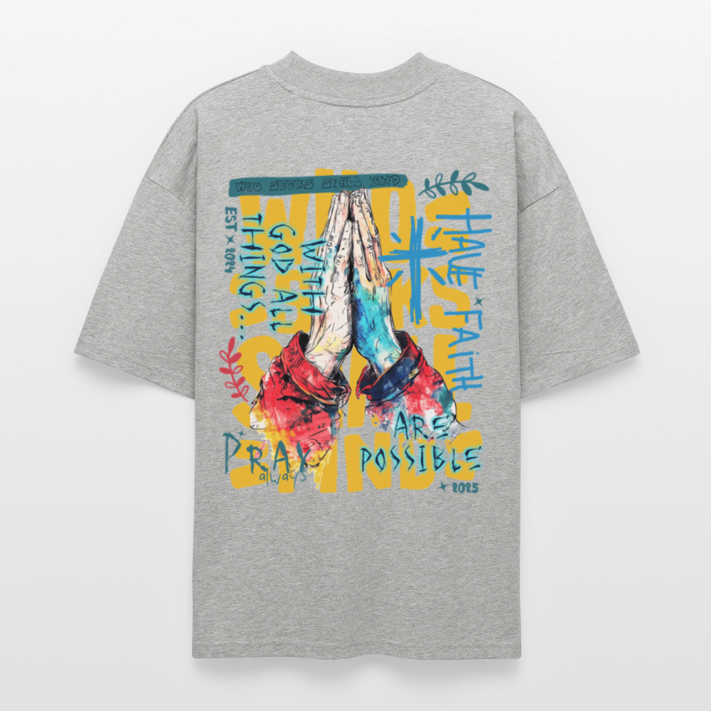 Perseus, Beten, 1st | Blaster, Oversize Bio T-Shirt, Unisex - Grau meliert
