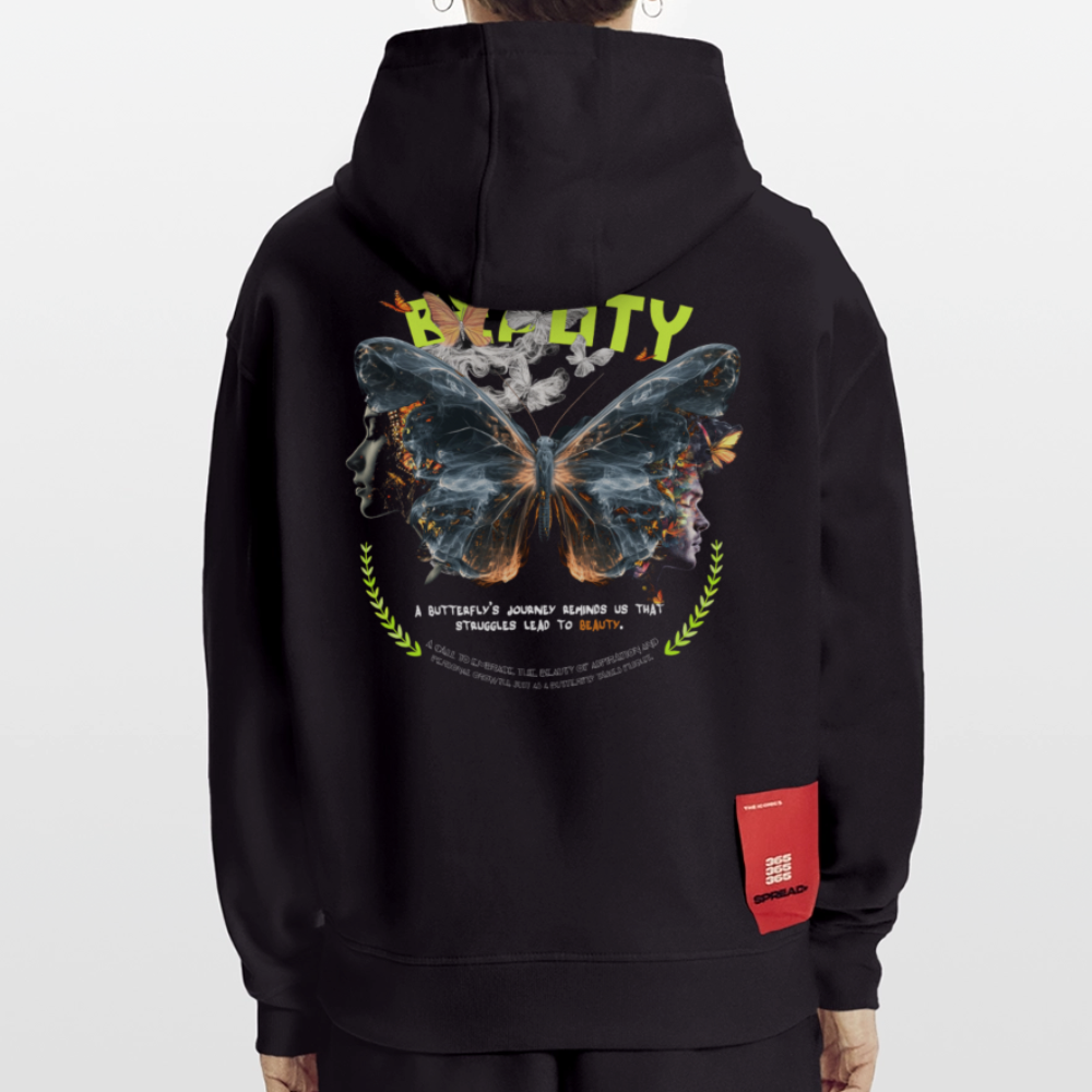 Harith, Schmetterling, 1st | Heavyweight Oversized Bio Hoodie, Unisex - SOLID BLACK